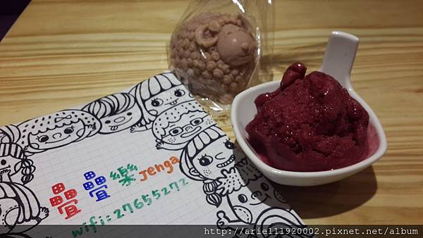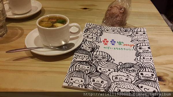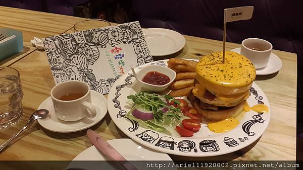 是一間裝潢可愛的店,包括菜單跟食物,