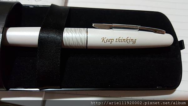 覺得刻在筆上,隨時提醒自己要"永遠都要持續思考"!